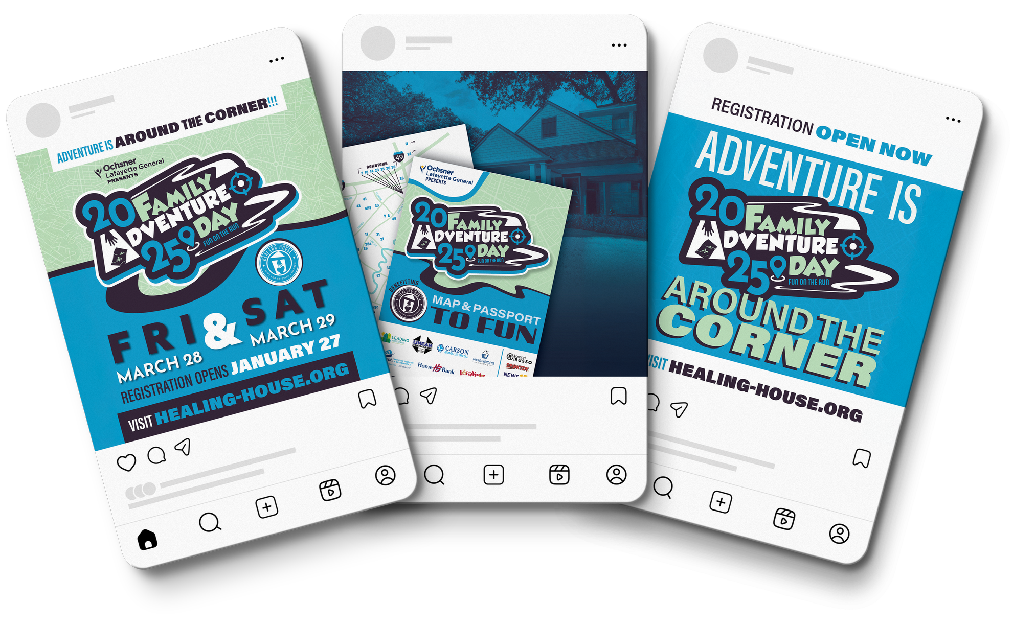 Since 2023, I’ve had the pleasure of developing the identity and relevant collateral for Healing House’s fundraising initiatives, including their Martini’s Gala and Family Adventure Day.